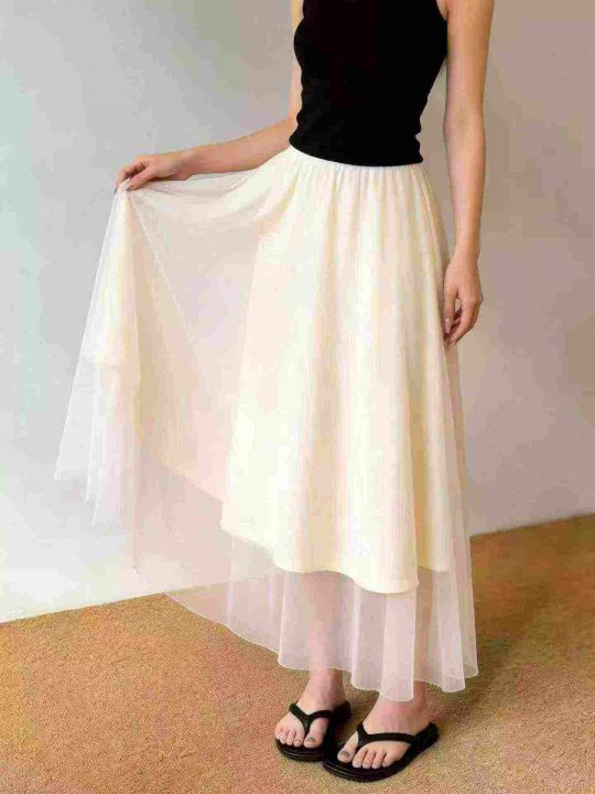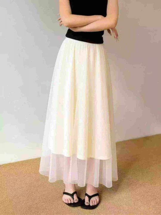 气质温柔网纱半身裙76件8.8,松紧腰,双层网纱,码数...