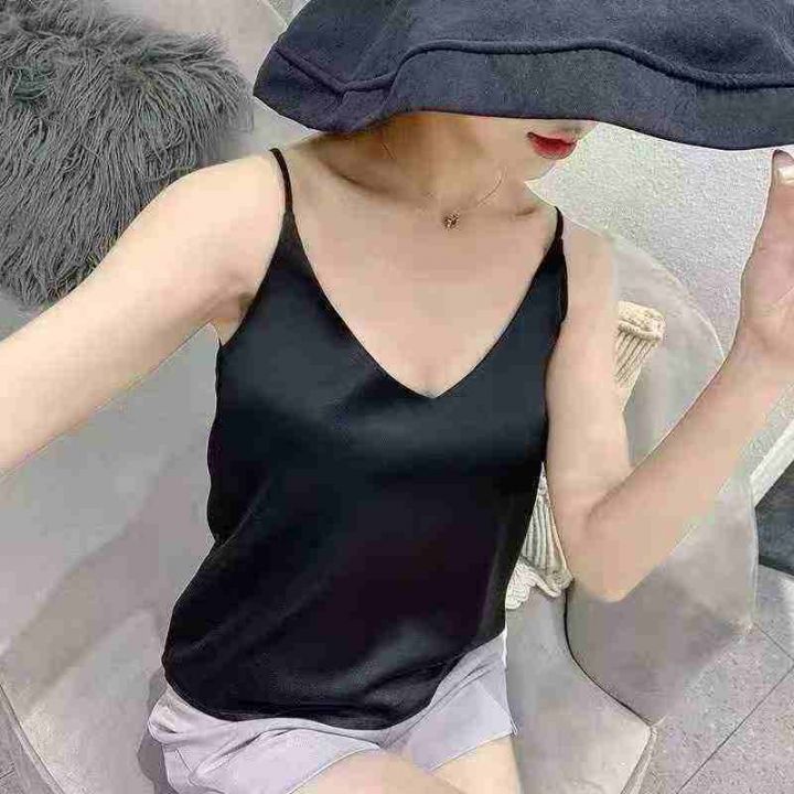 品牌仿真丝吊带背心女夏季新款高级感西装内搭轻薄打底衫缎面上衣,黑色(...