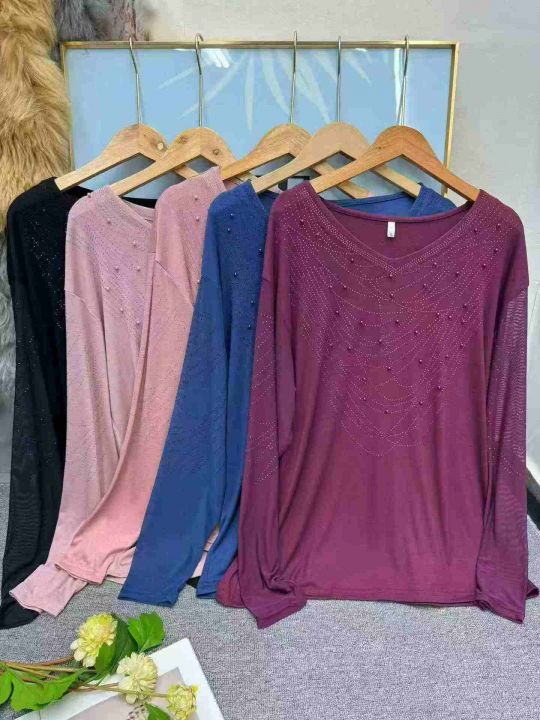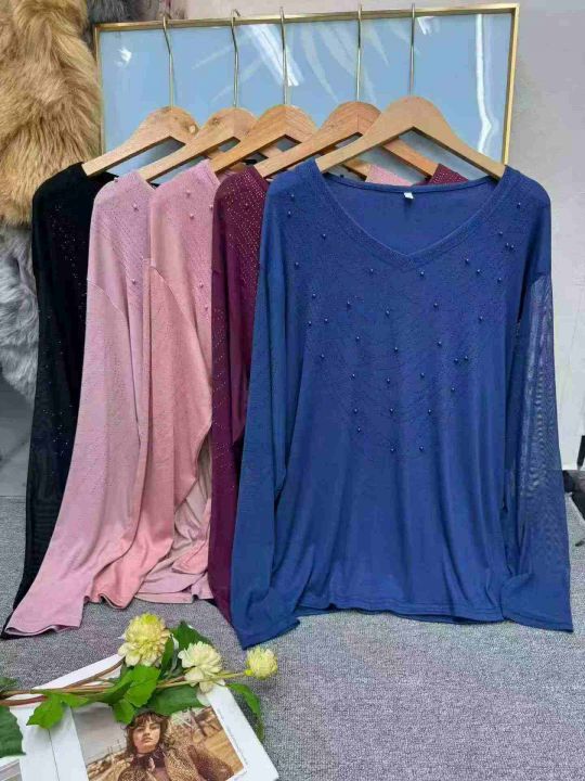 全清6.9元韩版V领钉珠烫钻长袖T恤女款 1913件 1-7码 ...
