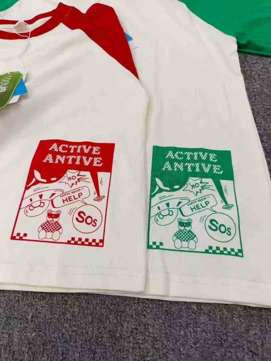 纯棉拼色卡通家居服短袖上衣T恤,领口包边,品质好,独立包装,数量790件左...