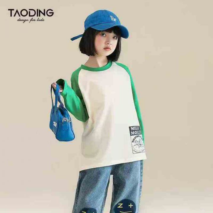 2025新款女中大童休闲时尚拼接上衣潮长袖,数量2000件左右,码数110--160,整款两个色,前后印花,后领包边,独立包装带吊牌