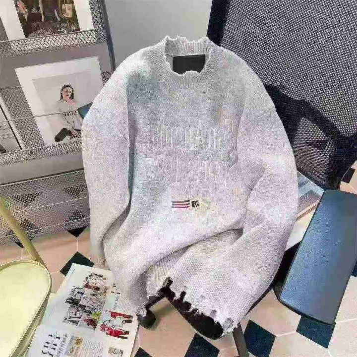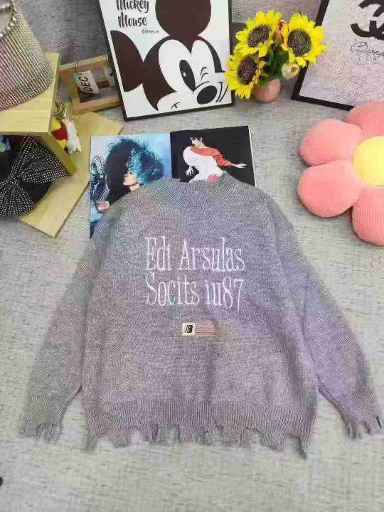 207件美式国潮高街刺绣破洞毛衣女秋冬季hiphop宽松休闲外穿针织衫上衣 独立包装