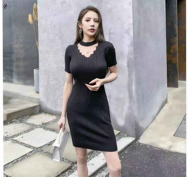 韩国东大门2026夏季新款洋气坑条纹 JU显瘦镂空圆领弹力修身连衣裙,独立包...