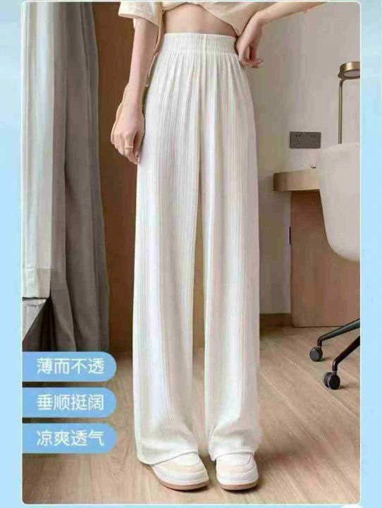 264条.冰丝阔腿裤女夏季薄款米白色高腰垂感休闲直筒裤宽松凉感运动裤子,独立包装,码数:M-XL,全清8.8元,分货➕0.5