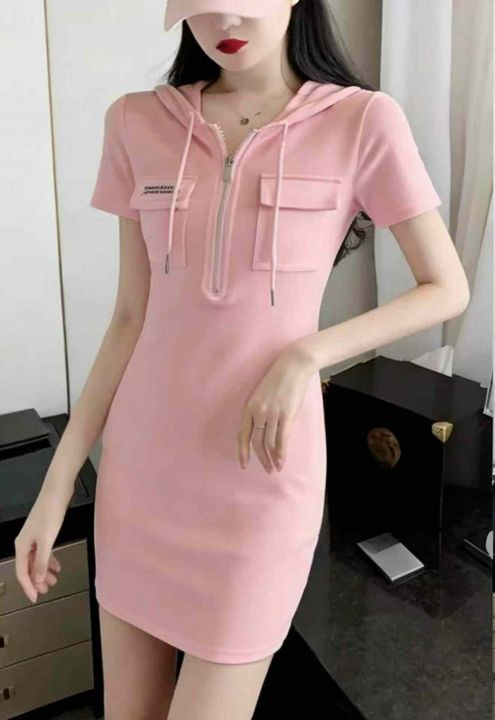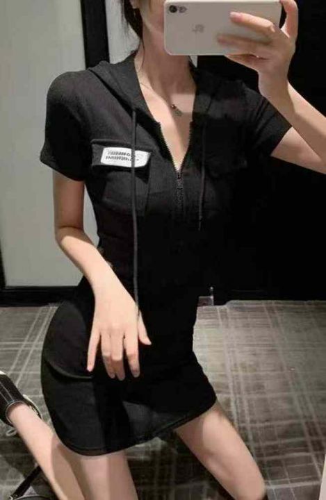 夏季新款性感弹力修身包臀设计感连帽抽绳连衣裙,独立包装,工厂新货码数1-3码,80件左右,全清6.9元超低价秒杀!