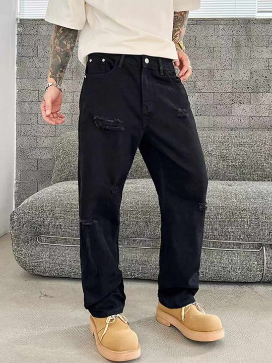 春夏季新款高品质男士设计款破洞直筒牛仔裤,独立包装...