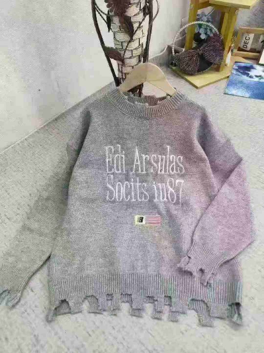9.9清207件美式国潮高街刺绣破洞毛衣女秋冬季hiphop宽...