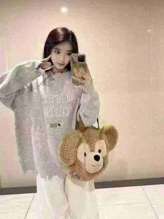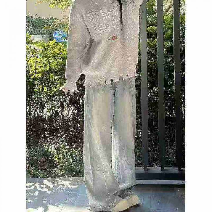207件美式国潮高街刺绣破洞毛衣女秋冬季hiphop宽松休闲外穿针织衫上衣 独立包装