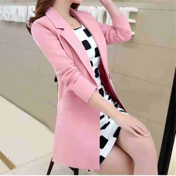 ☕️粉色西装外套新款春装韩版显瘦小西服大码长袖中长款春秋外套35件全清9....