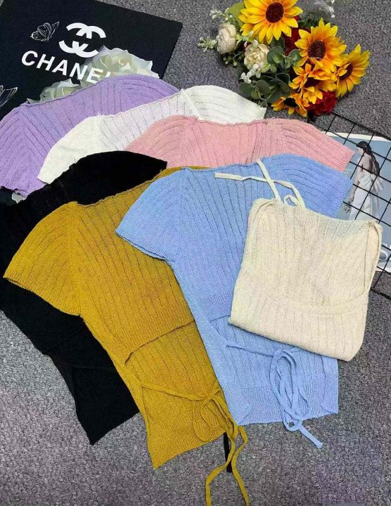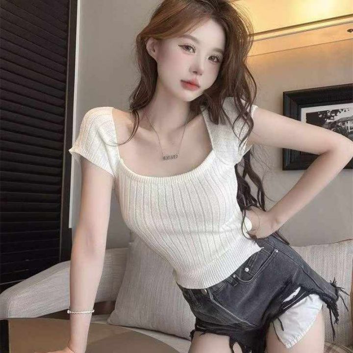 夏季新款绑带设计款冰丝网红针织T桖,独立包装,均码...