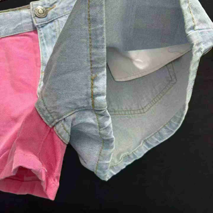 英国时尚品牌golddigga拼色粉蓝牛仔短裤