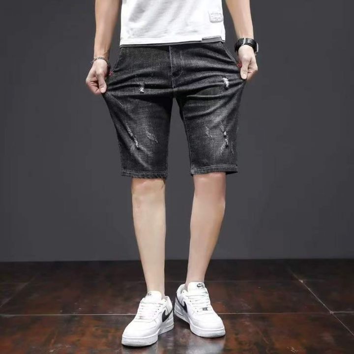 夏季新款高弹力复古洗水棉男士潮牌设计款牛仔中裤,独立包装带腰卡,码数27...