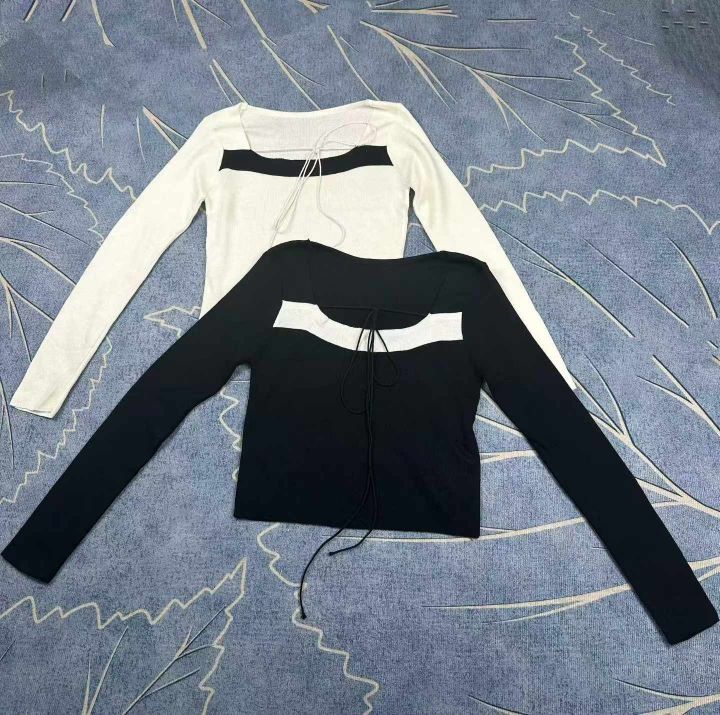 性感纯欲方领长袖针织衫设计短款显瘦打底针织上衣,独立包装,150件,清6.8,分➕0.5