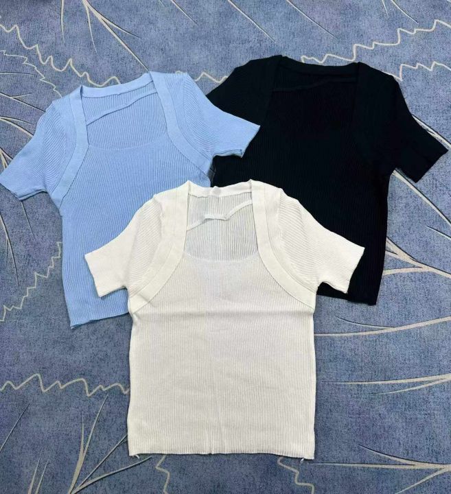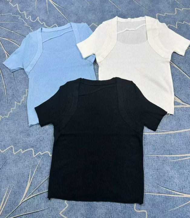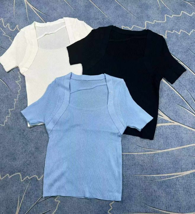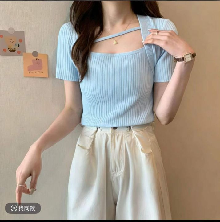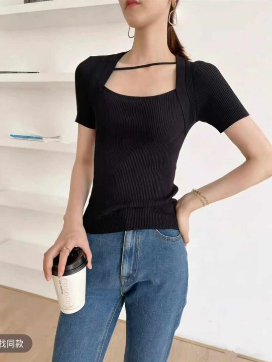 时尚显瘦针复古方领挂肩修身女透气针织短袖,独立包装,190件,清6.8,分➕0.5