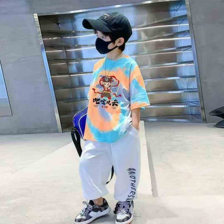 哪吒中大童纯棉短袖卡通动漫T恤宽松洋气透气扎染,数量443件,码数130-170...