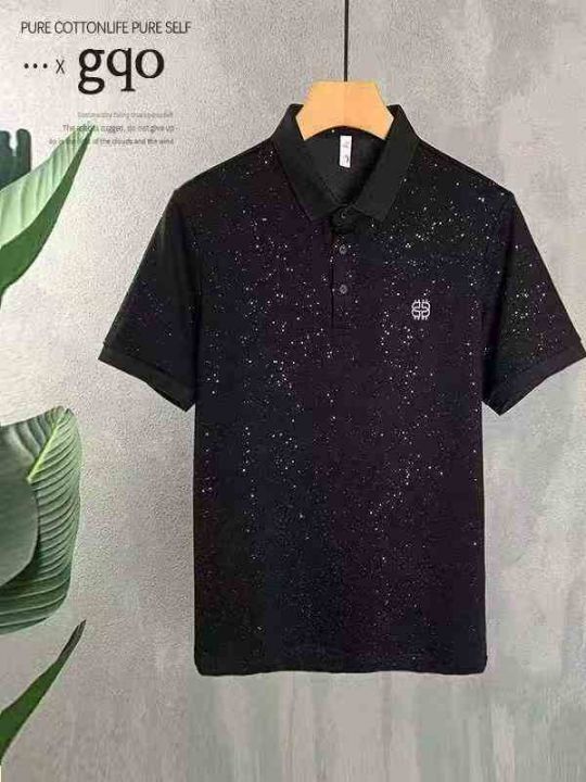 满天星男士t恤短袖高级感夏季穿搭痞帅半袖POLO衫高端黑色半截袖
