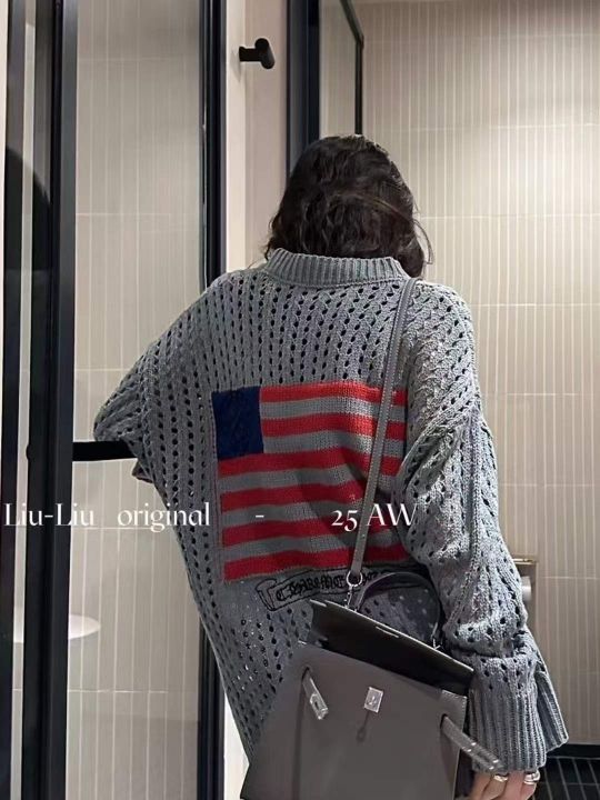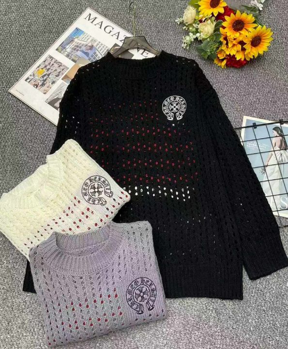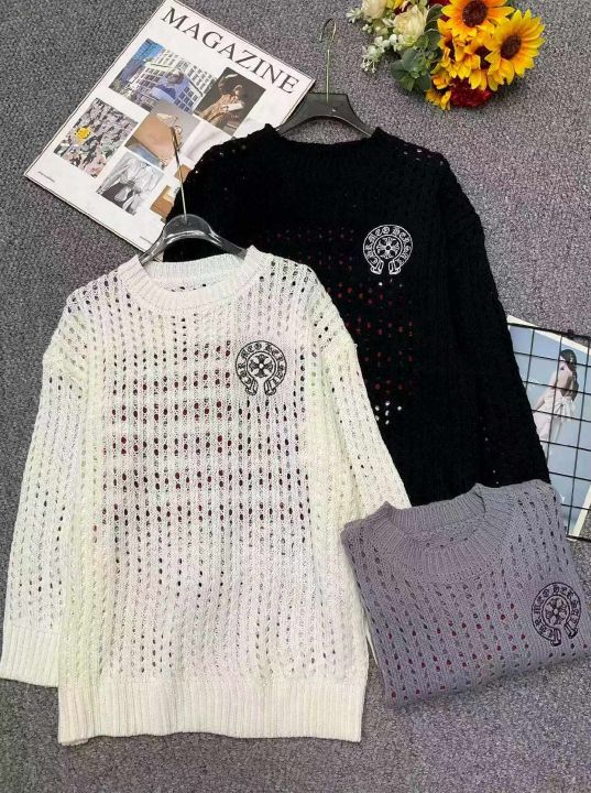 早春季新款宽松潮牌圆领镂空设计款长袖针织衫,独立包...