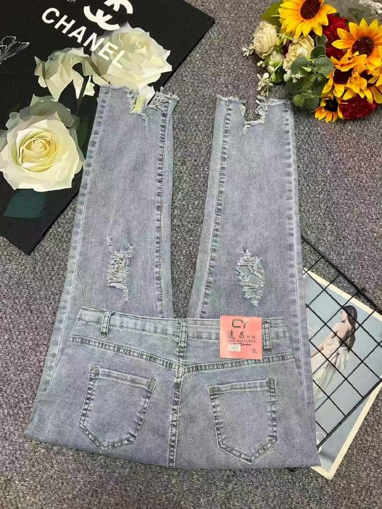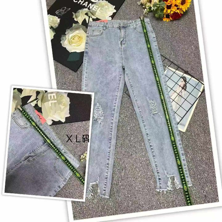 春夏季新款高弹力网红复古洗水棉破洞9分牛仔小脚裤,独立包装带腰卡,码数M-XL码, 180件左右,全清8.9元超低价秒杀!