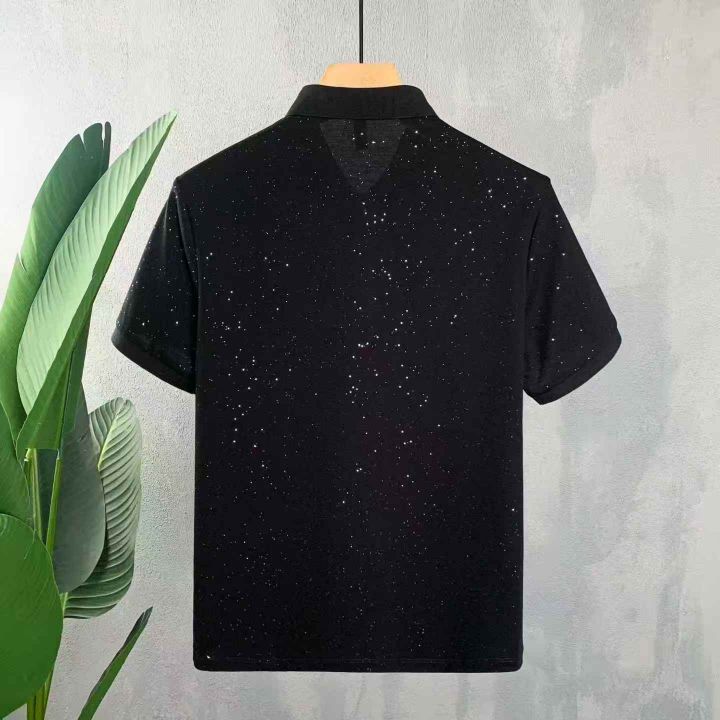 满天星男士t恤短袖高级感夏季穿搭痞帅半袖POLO衫高端黑色半截袖