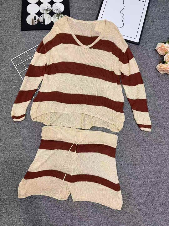 98套\'具体点数为准\'长袖薄款时尚百搭条纹针织短裤套装,独立包装\'均码,货号001#30