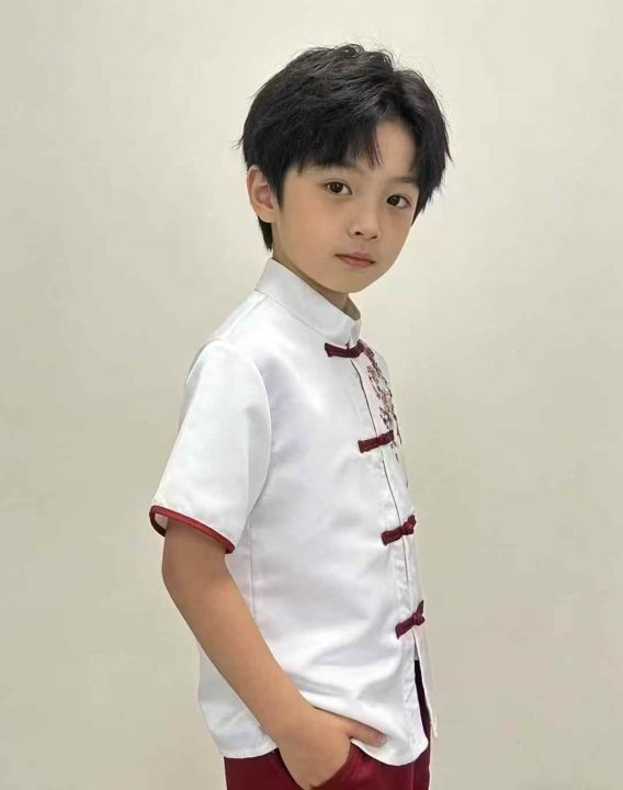 爆款男童中式短袖衬衫!现货秒杀价3.8清!149件,110~170码,立领盘扣设计超有韵味,刺绣花纹栩栩如生,面料顺滑透气,男宝穿起来帅气又有范儿~一手货源,批发价美丽,要货的老板速来
