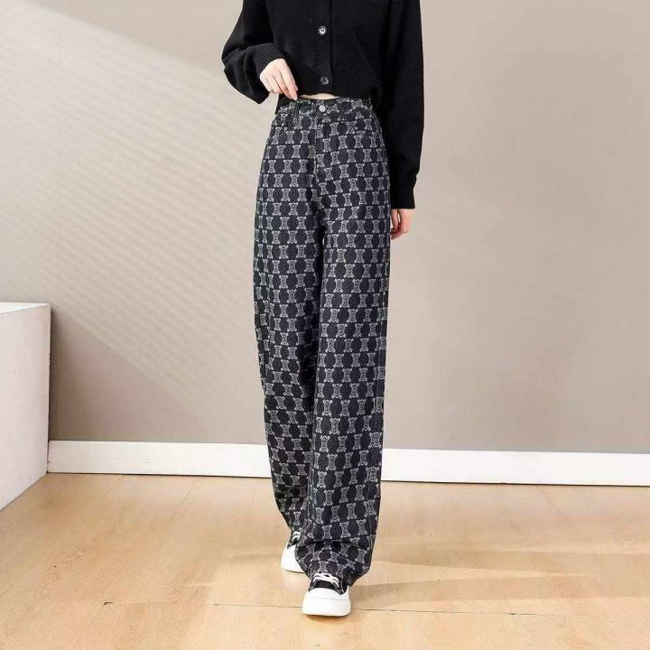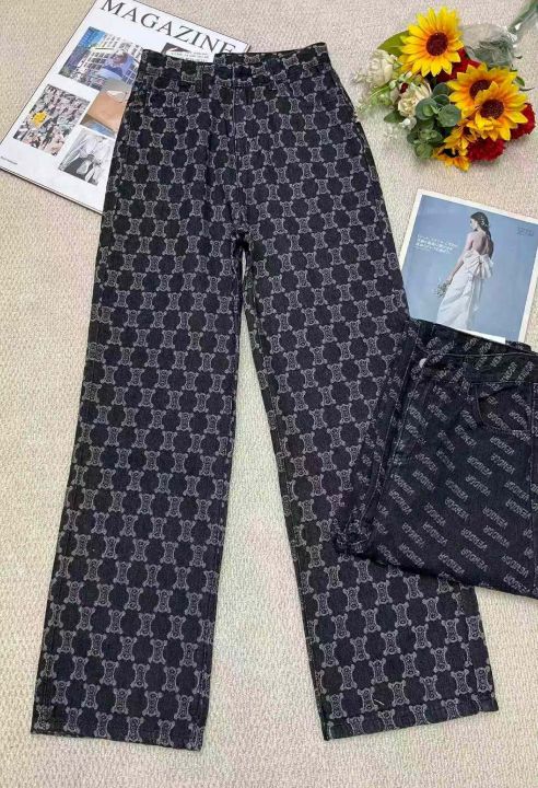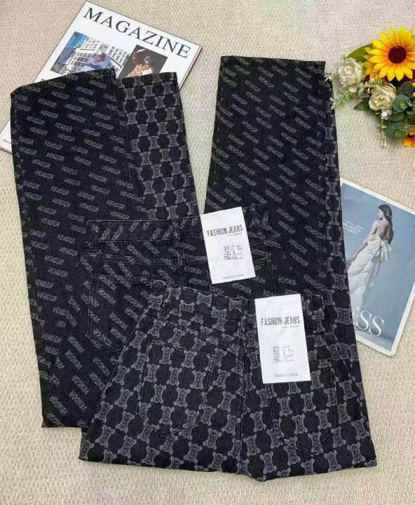 春季新款美式宽松百搭设计感字母提花直筒牛仔阔腿裤,...