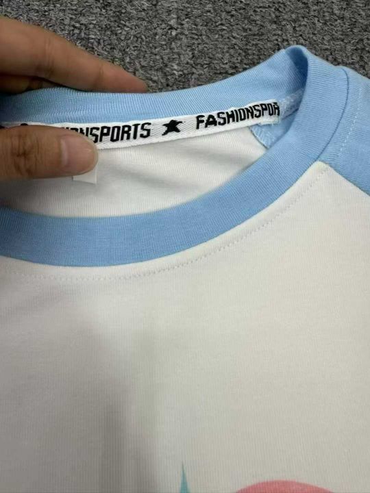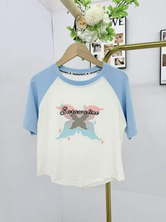 清5.8分货➕1甜酷蝴蝶拼色插肩短袖t恤女,带弹力,数...