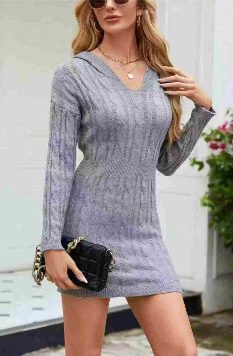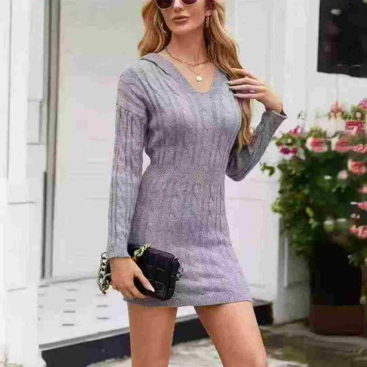 欧美风长袖中长款针织包臀气质通勤单麻花连衣裙,独立包装,85件,清6.8