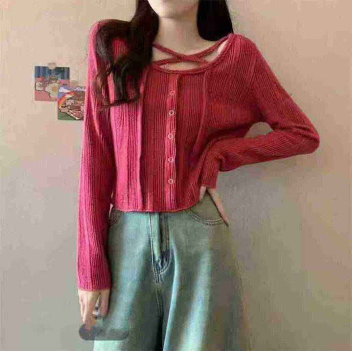 法式独特甜辣短款针织衫春秋美拉德内长袖针织小衫,独...