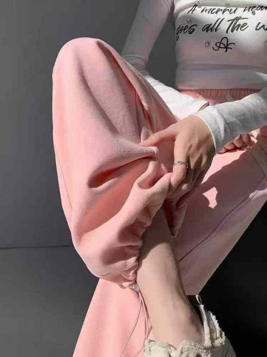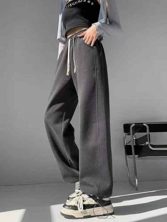 1217条美式抽绳长裤子女休闲ins宽松直筒高腰阔腿卫裤...