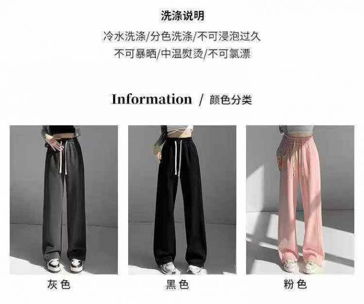 1217条美式抽绳长裤子女休闲ins宽松直筒高腰阔腿卫裤,整款3个颜色,独立包装带吊牌,码数S一4XL,全清9.8分货加1
