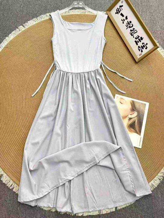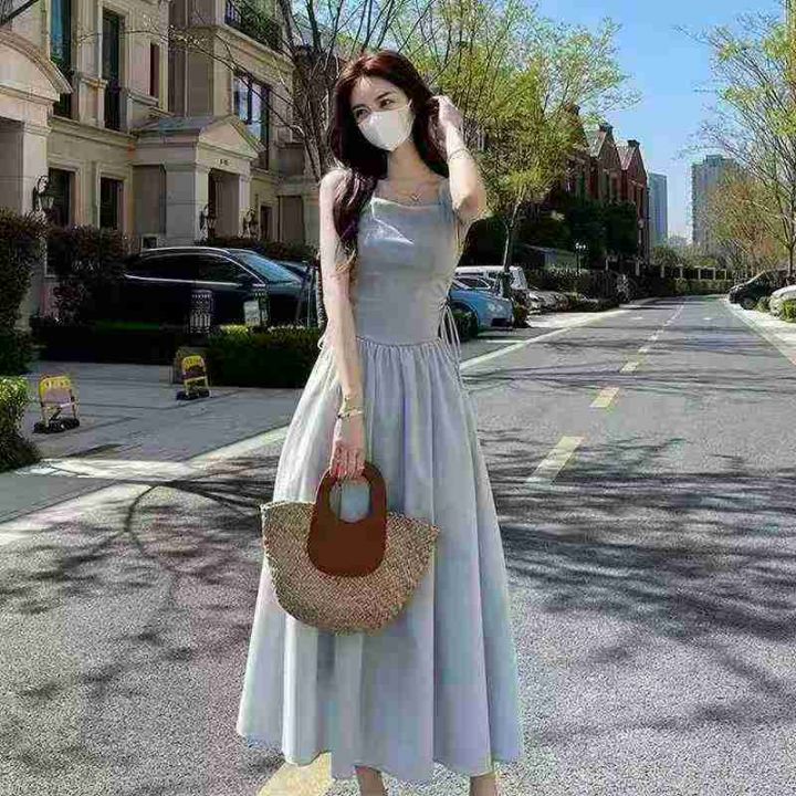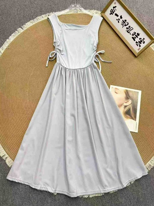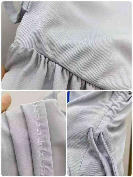 法式方领连衣裙129件8.9,面料舒适,撞色拼接,抽绳绑...