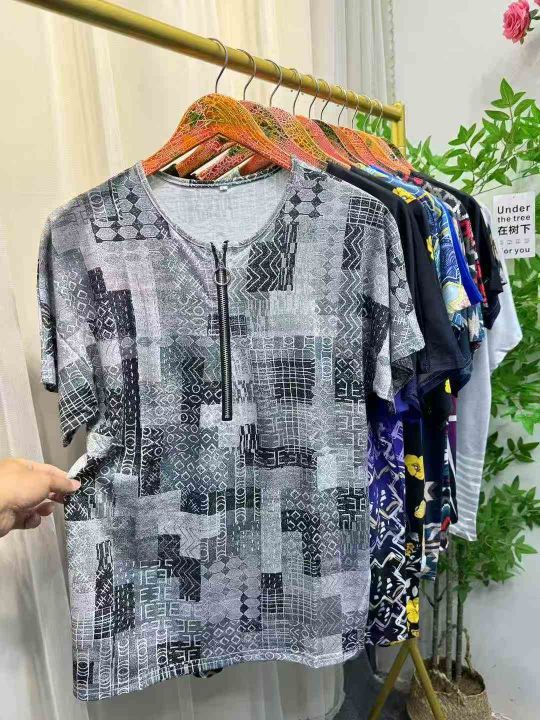 1500件,夏季欧美热销wish 独立站女民族风印花棉短袖v领拉链T恤上衣,独立包装,S-5XL,分货➕1,货号001#30