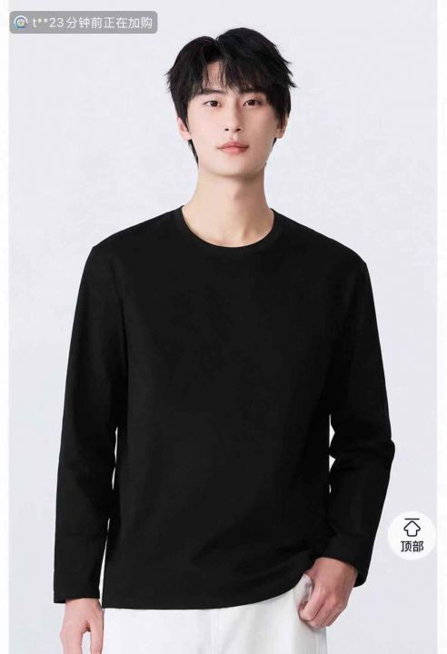 新款宽松不透纯色打男女同款纯棉长袖T恤,单款,领口...