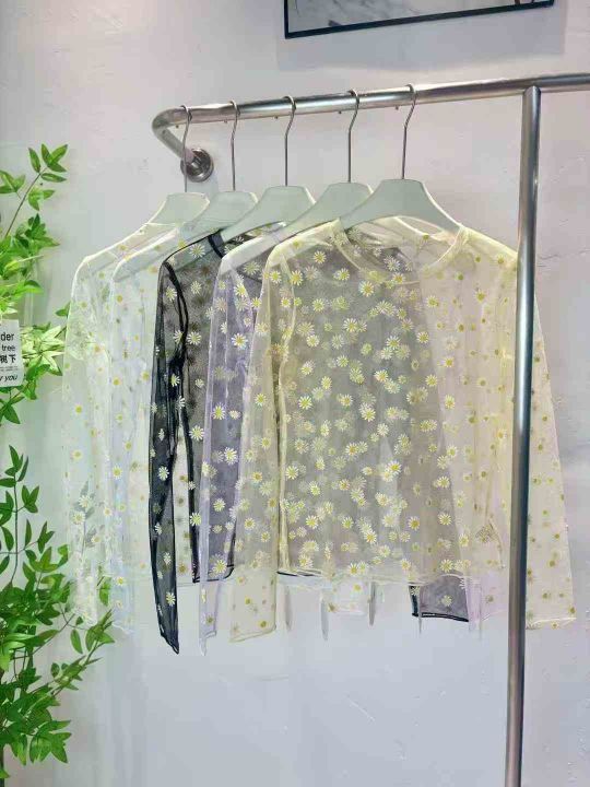 430件小雏菊网纱打底衫蕾丝t恤靓妹款夏季防晒叠穿纱衣上衣长袖内搭体恤潮,质量好零瑕疵,尺码S-3XL,独立拉链包装,全清4.3