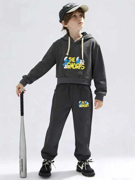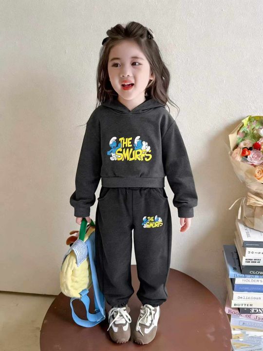 一体绒连绵休闲卫衣套装春秋连帽卫衣长袖两件套儿童连...