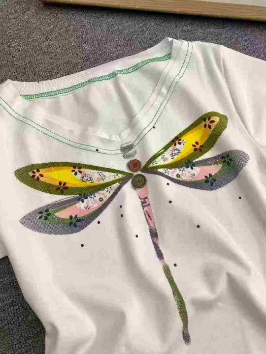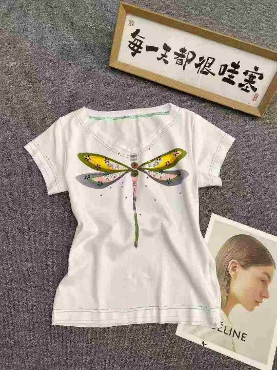 纯棉复古V领短袖120件6.9, 面料柔软有弹力,图案印花...