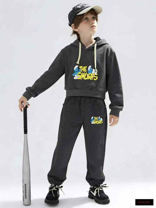 一体绒连绵休闲卫衣套装春秋连帽卫衣长袖两件套儿童连帽卫衣套装,85-130码...