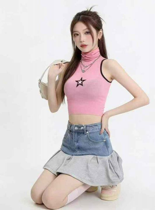 夏季新款日系甜美风复古牛仔拼接半身裙,独立包装带吊牌,可穿80--100斤左...