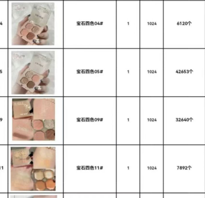 四色眼影盘数量89000个日期26.11毛毛钱清。