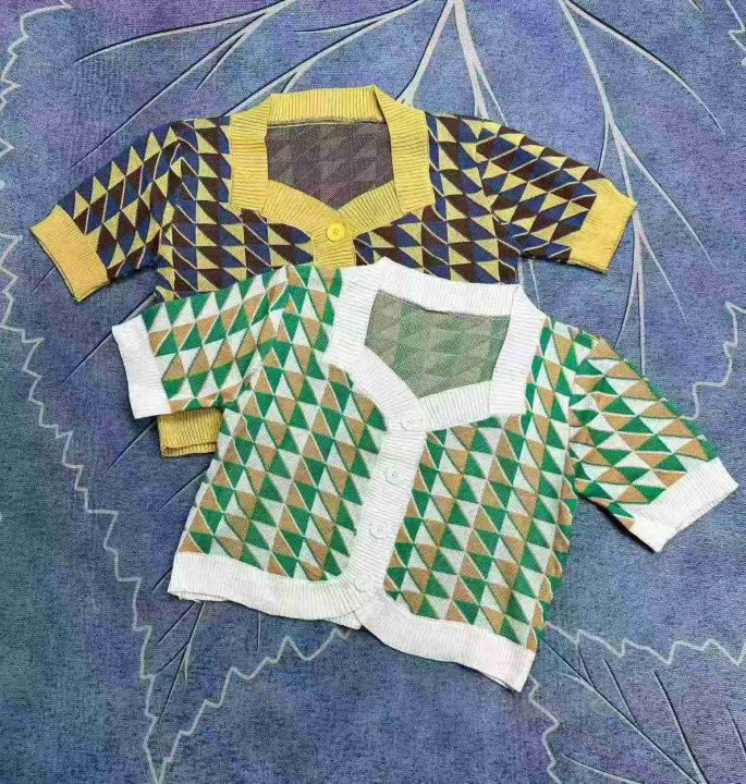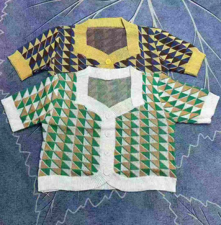 夏季韩版ins方领复古格子拼色针织开衫女显瘦洋气短袖开衫,独立包装,1250件左右,清6.8,分➕0.5