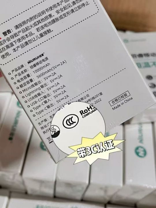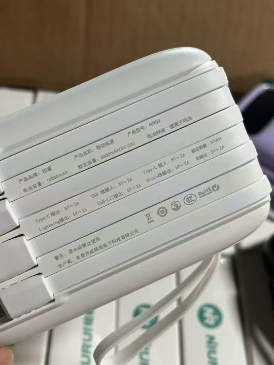 纽睿品牌 10000 毫安充电宝,带3c认证,自带 4 线, ...