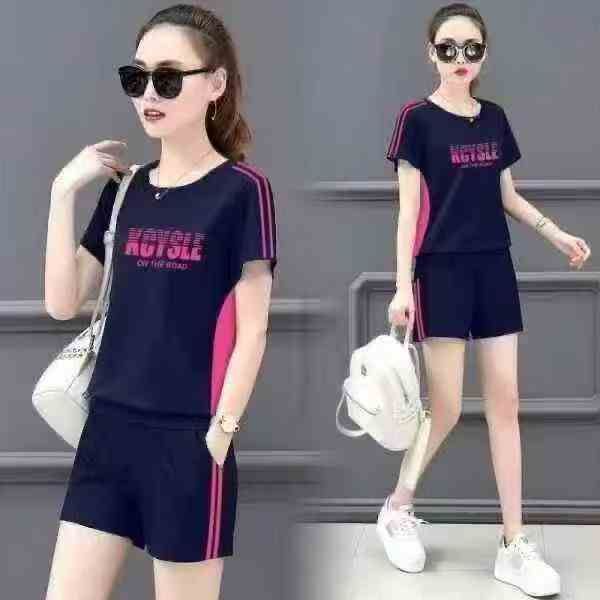 大码女装休闲运动服套装女夏宽松新款短袖短裤两件套,...