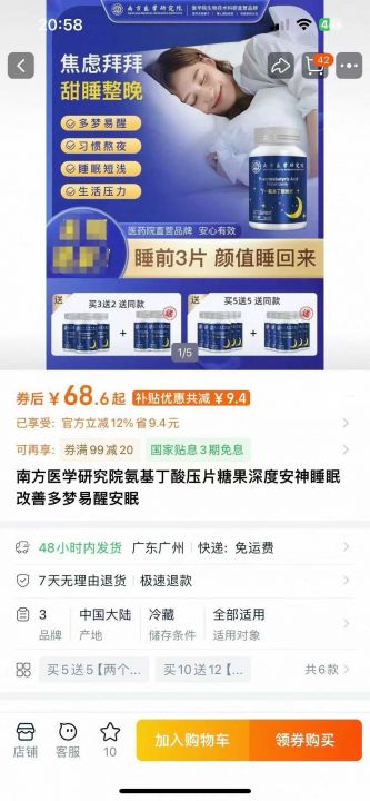 南方医学研究院 氨基丁酸晚安片10000盒,翻盖大厚盒子,对标价格高,便宜清货
