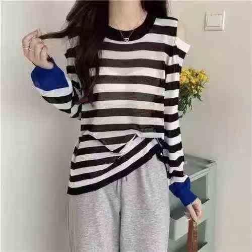 小心机露肩减龄甜美宽松条纹针织衫,数量625件,单款多色,均码,独立包装,分货➕1随机配
