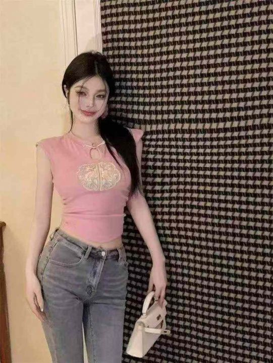夏季新款复古新中式盘扣国风刺绣设计感百搭针织小衫,...