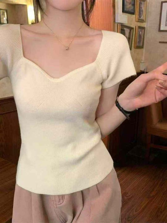 夏季新款网红法式气质弹力修身显瘦辣妹针织小衫,独立...