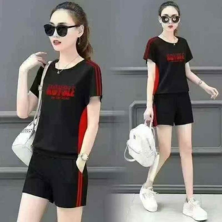 大码女装休闲运动服套装女夏宽松新款短袖短裤两件套,...