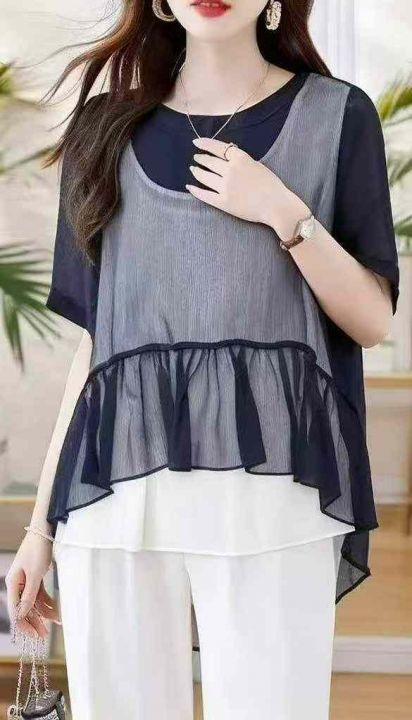 夏季新款段染彩纱木耳边性感辣妹针织短袖t恤,独立包装,均码面料柔软舒适...
