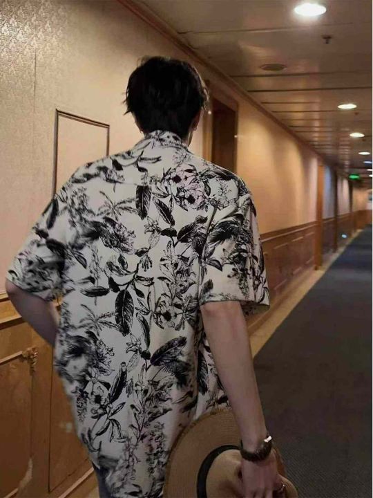 夏季新款男士度假风古巴领半袖休闲冰丝衬衣开衫,独立...